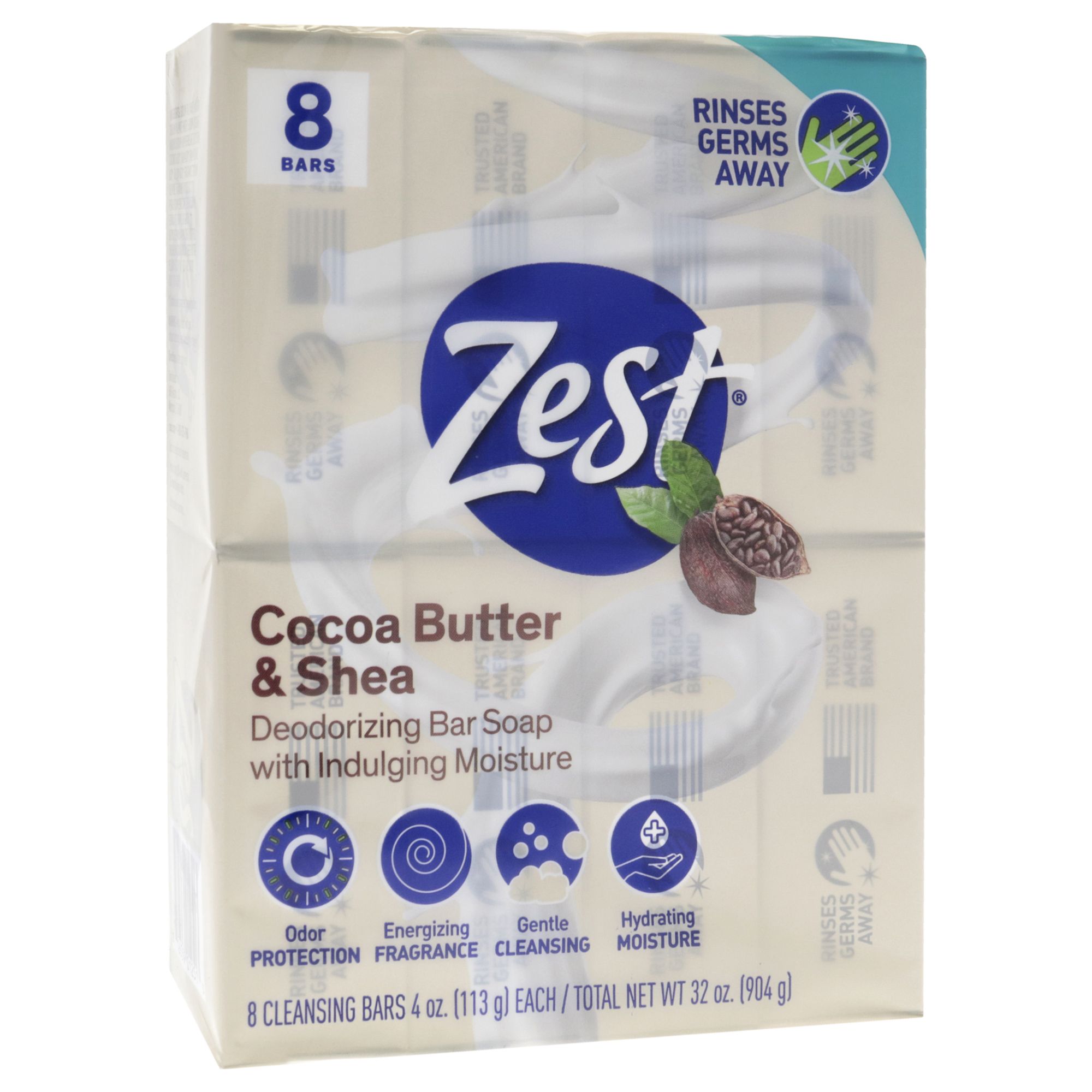 Deodorant Bar Soap - Cocoa Butter and Shea by Zest for Women - 8 x 4 oz Bar Soap
