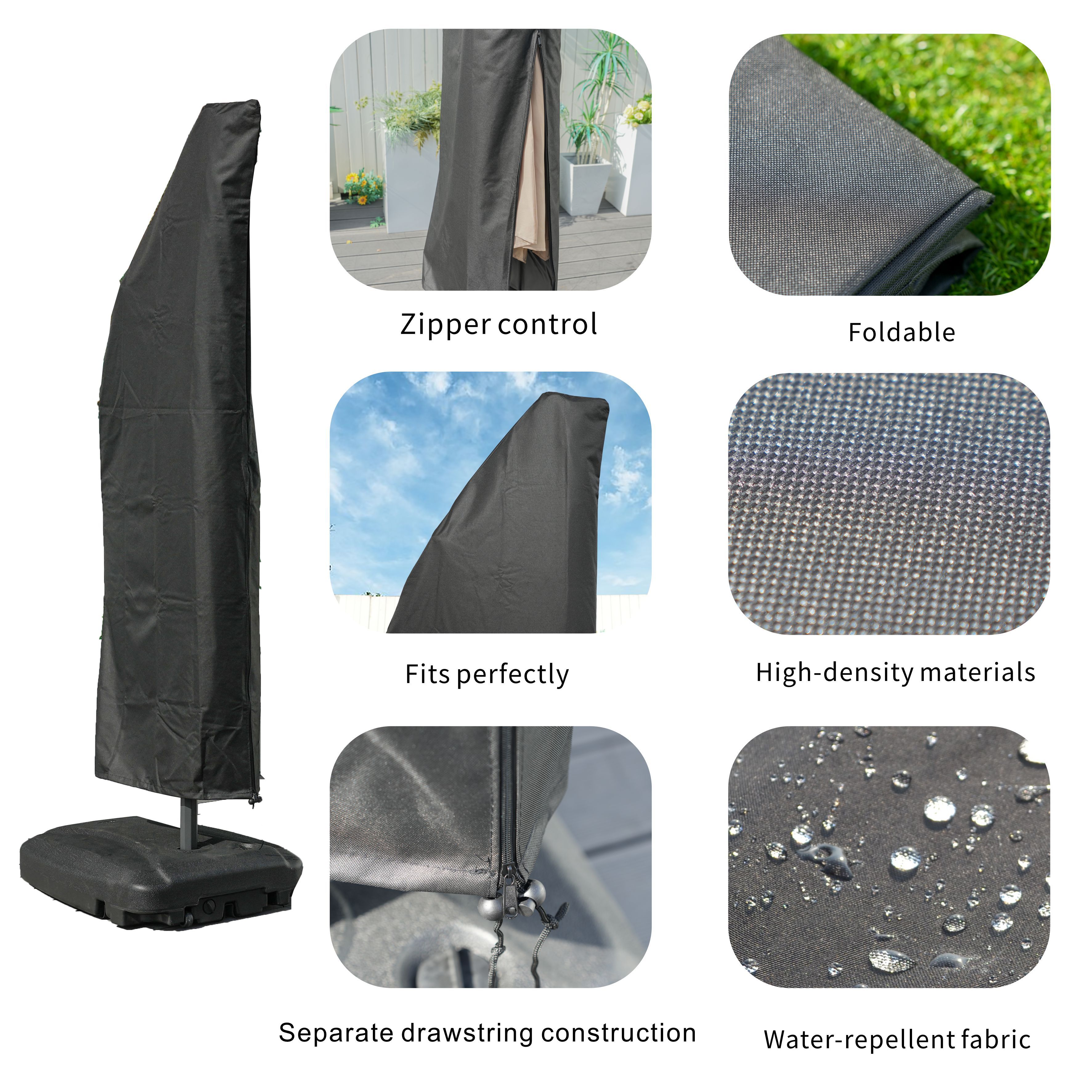Keep your outdoor cantilever umbrella in pristine condition with this premium umbrella zipper cover, available in beige or black. Designed for convenience and durability, this cover provides comprehensive protection from harsh weather and environmental elements, ensuring your umbrella lasts longer and stays looking new.