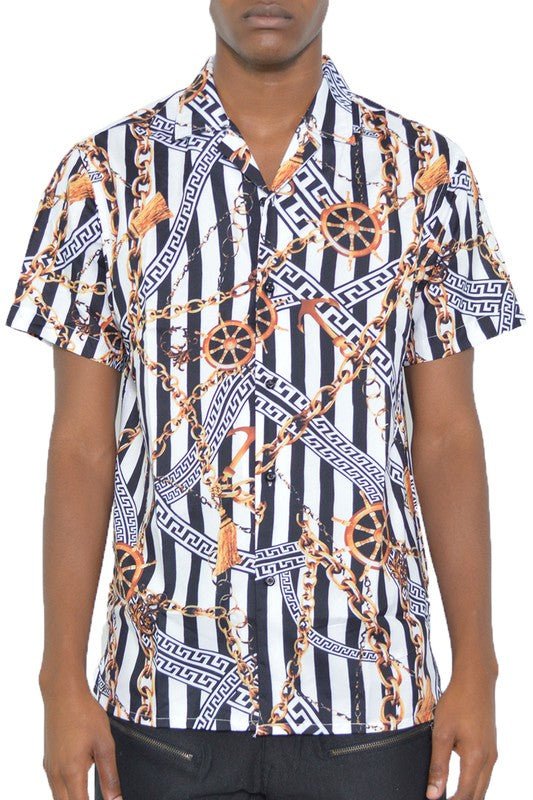 Home > MENS GOLD CHAIN STATUS PRINT BUTTON DOWN SHIRT