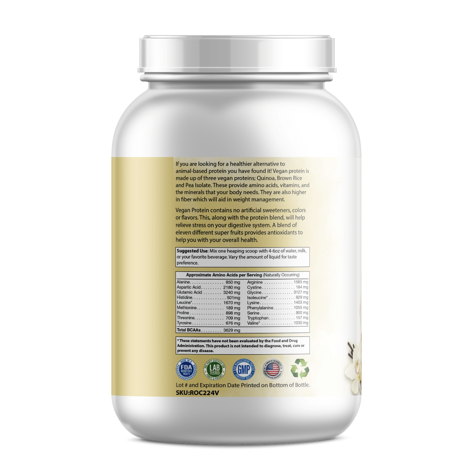 Pure Plant Protein has no lactose! This is a great option for anyone with digestive issues such as IBS, food intolerances, lactose intolerance, bloating or a slow metabolism. Plant based proteins are a lot easier for the body to break down. That means that you will have an easier time digesting it and absorbing it into the body. We made sure to add a blend of pea protein, brown rice protein and quinoa protein.