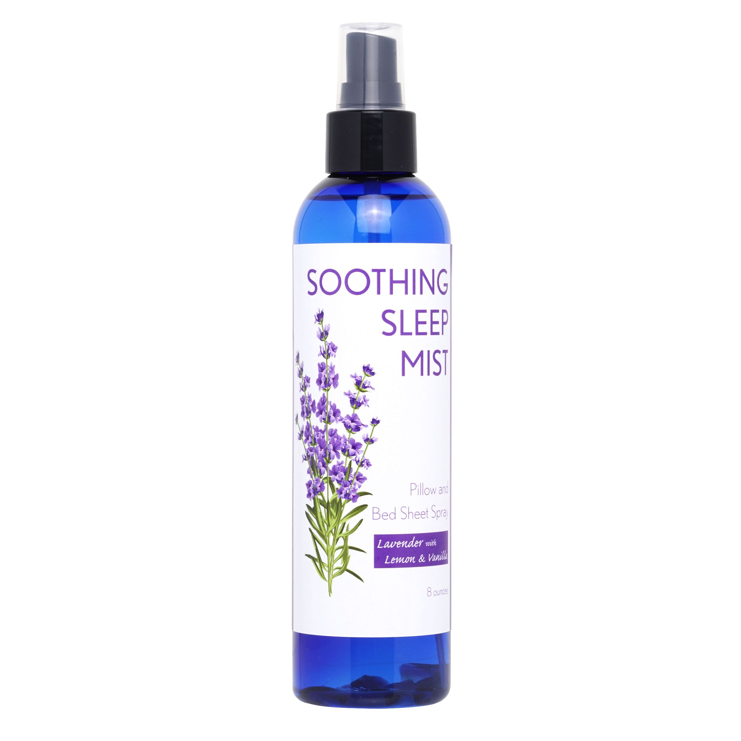 8 ounce spray mister. Designed for better sleep; our Soothing Sleep Mist is hand-crafted in the United States with 100% pure ORGANIC essential oils of Lavender and COMPLIMENTING ESSENTIAL OILS; Amethyst Crystals and Reiki charged. Carefully formulated to ensure you get the best sleep possible. These oils and Amethyst crystals are well known for their calming effect; ability to promote restful sleep and alleviating anxiety and stress. See how sleep can be effortless and easy once again with our Soothing Sleep Mist! PLEASE NOTE WE ONLY USE ORGANIC ESSENTIAL OILS. WE ONLY USE PURE UNTREATED NATURAL SPRING WATER; NOT CITY CHLORINATED TAP WATER AS DO MOST OTHER COMPETITORS. (cap color may vary)